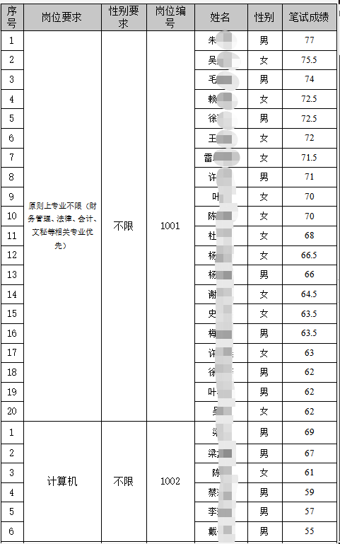 二、根據應聘人員筆試成績從高分到低分,結合招聘計劃人數決定各崗位面試參加人員,具體為:計算機專業按招聘計劃數的1:3決定面試參加人員,其它專業按1:2決定面試參加人員;如筆試入圍最后一名出現分數并列的,并列人員均參加面試。