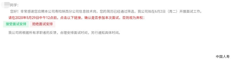 2020年中國人壽壽險陜西分公司信息技術崗春季校園招聘面試通知