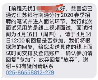 2020江蘇銀行南通分行春季校園招聘面試通知