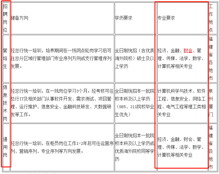 具體崗位報考專業要求請參考官方招聘公告,詳見《2020年泉州銀行春季校園招聘公告》。