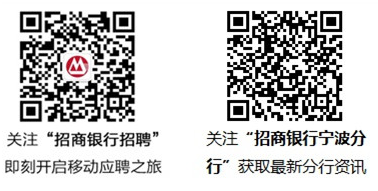 官方微信:掃描下方二維碼,關(guān)注“招商銀行招聘”微信公眾平臺(tái),獲取最新的校園招聘信息,點(diǎn)擊“校園招聘”,申請(qǐng)感興趣的職位,投遞簡(jiǎn)歷!