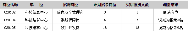 2016年云南省農村信用社第二批校園招考報名已經結束,根據《2016年云南省農村信用社第二批校園招考公告》中,關于崗位調整規定:“每個崗位的報名繳費人數與計劃招考人數比例應不小于2:1,報名繳費人數與計劃招考人數未達到2:1的崗位,視情況取消或縮減該崗位的招考人數”的要求,現根據各崗位實際報名情況,對未達到開考比例的3個崗位進行調整,具體如下: