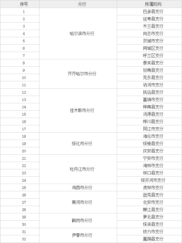 黑龍江省分行2016年春季校園招聘機(jī)構(gòu)