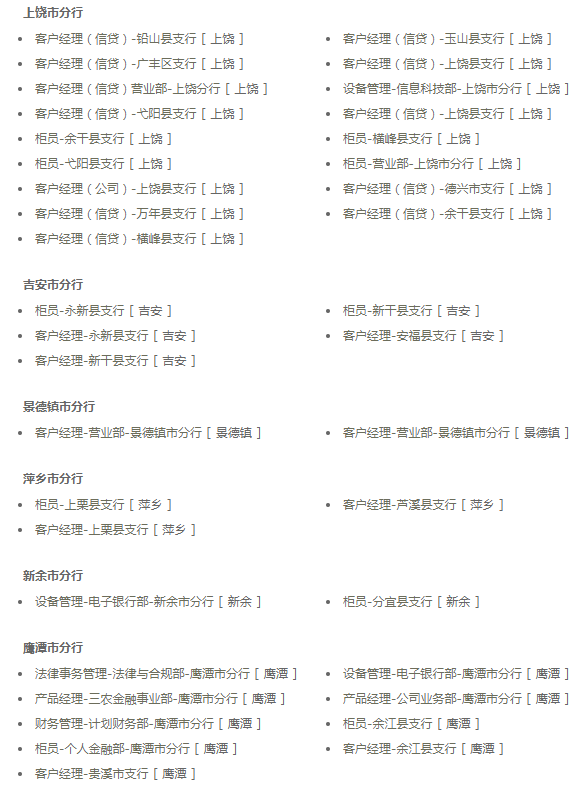 本次招聘崗位主要是各市、縣分支行專業類、銷售類、柜員崗位等。