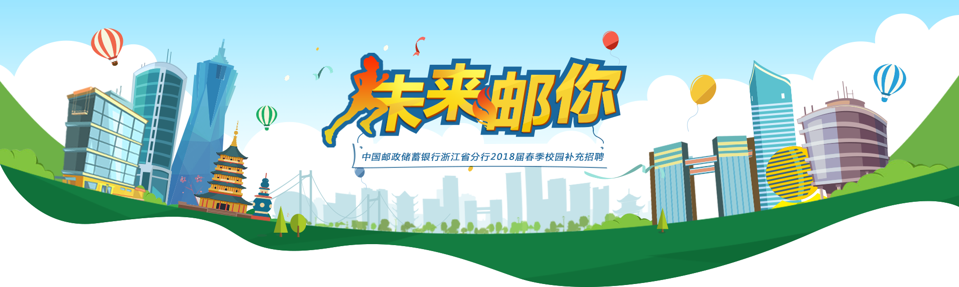 砥礪十年譜華章,風(fēng)華正茂啟新程。中國郵政儲蓄銀行浙江省分行改革發(fā)展的良好契機將為您提供搏擊長空、展翅翱翔的廣闊天地,誠邀2018屆優(yōu)秀大學(xué)畢業(yè)生加盟,共創(chuàng)大業(yè)!