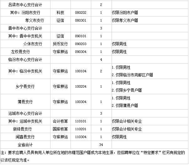 10.招聘單位另有要求的,詳見《山西省人民銀行系統2016年業務操作崗位聘用制員工招聘簡章》中“特定要求”。