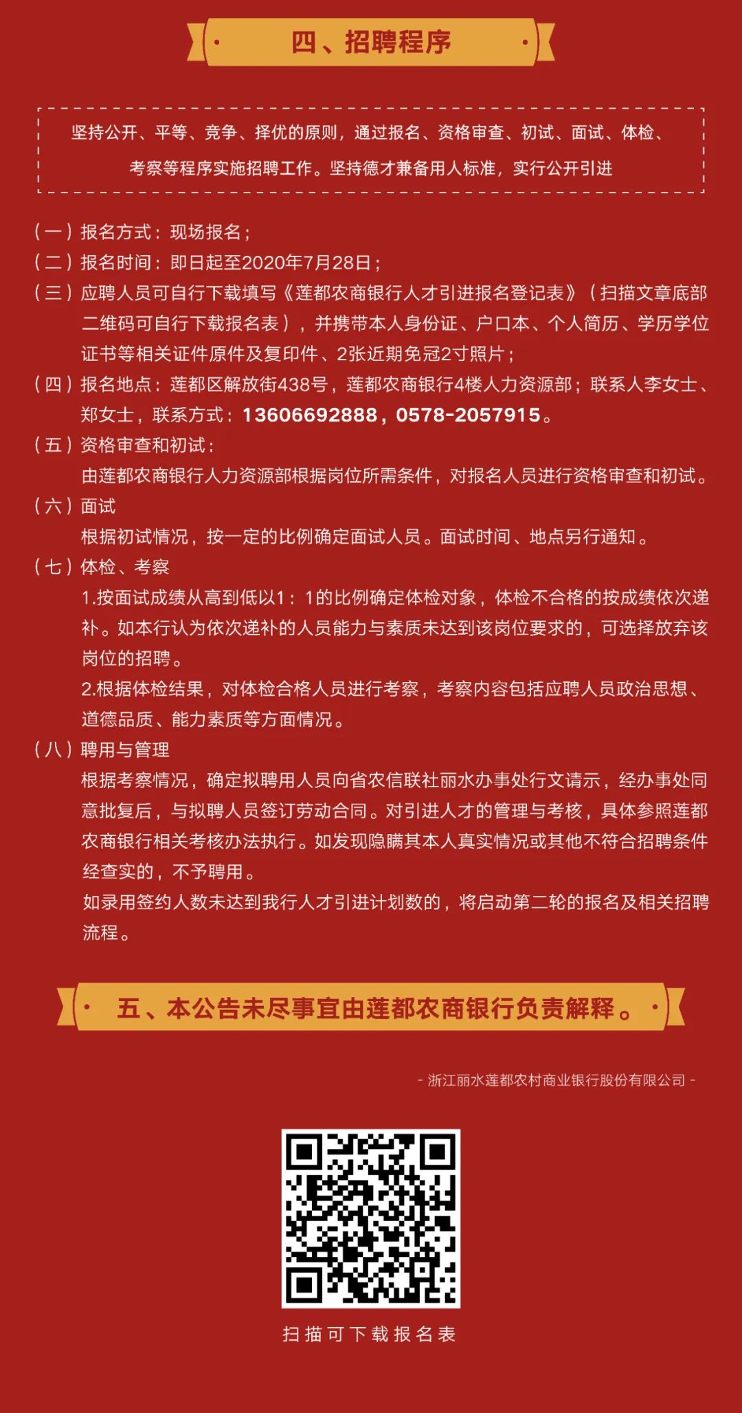 [浙江]2020蓮都農(nóng)商銀行人才引進(jìn)公告