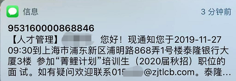 [上海]2020浙江泰隆商業銀行秋季校園招聘面試通知