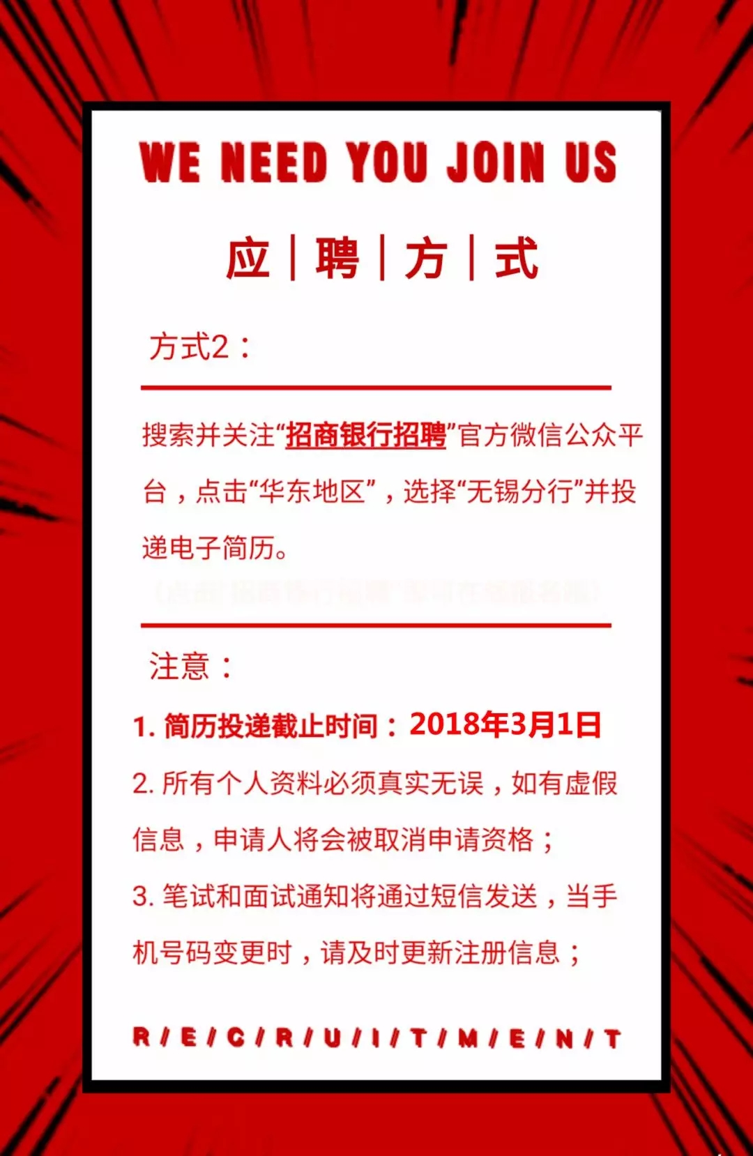 [江蘇]2018年招商銀行無錫分行春季校園招聘公告