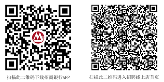 方式二:點擊鏈接 https://dwz.cn/iAfvhZf2 或掃描下方二維碼,下載招商銀行APP,點擊首頁【城市服務】—定位到【深圳】—【更多精彩】—【深圳分行招聘】投遞簡歷。持續關注線上店,了解更多招聘資訊!