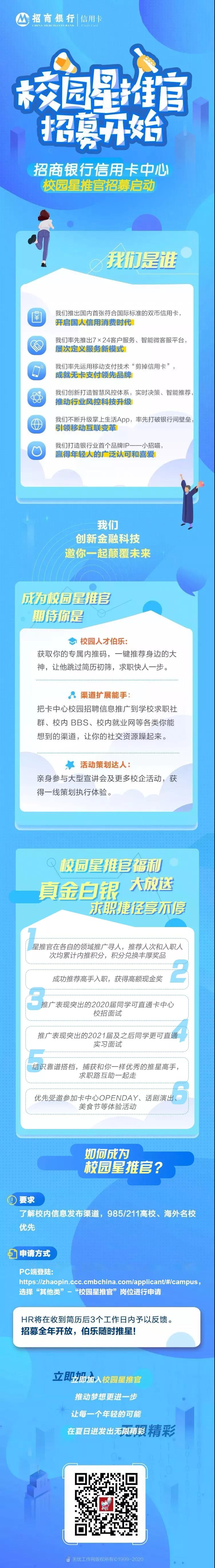 2020年招商銀行信用卡中心校園星推官招募開啟公告(校招于2月24日開啟)
