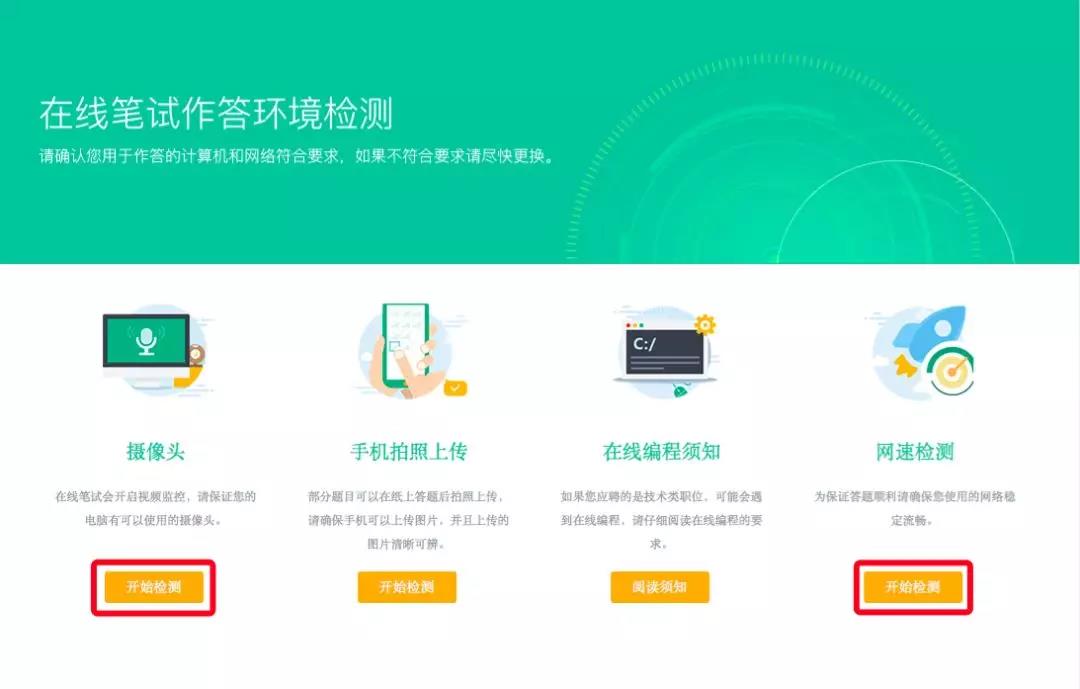 2.軟件準(zhǔn)備:請(qǐng)確保作答前關(guān)閉易出現(xiàn)彈窗、廣告的軟件或網(wǎng)頁(yè),如QQ、微信、360、迅雷等(彈窗會(huì)導(dǎo)致考試界面跳出,頻繁跳出將被視為作弊);請(qǐng)確保您的電腦安裝了Chrome瀏覽器(66以上版本,下載網(wǎng)址https://www.baidu.com/s?wd=chrome)并確保攝像頭可用;為了考試順利,請(qǐng)盡早前往https://assistant.ceping.com進(jìn)行攝像頭、網(wǎng)速等作答環(huán)境的檢測(cè)(如下圖):