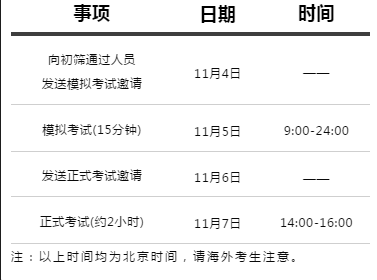 北京時(shí)間11月7日下午2點(diǎn)舉行全球統(tǒng)一在線考試。